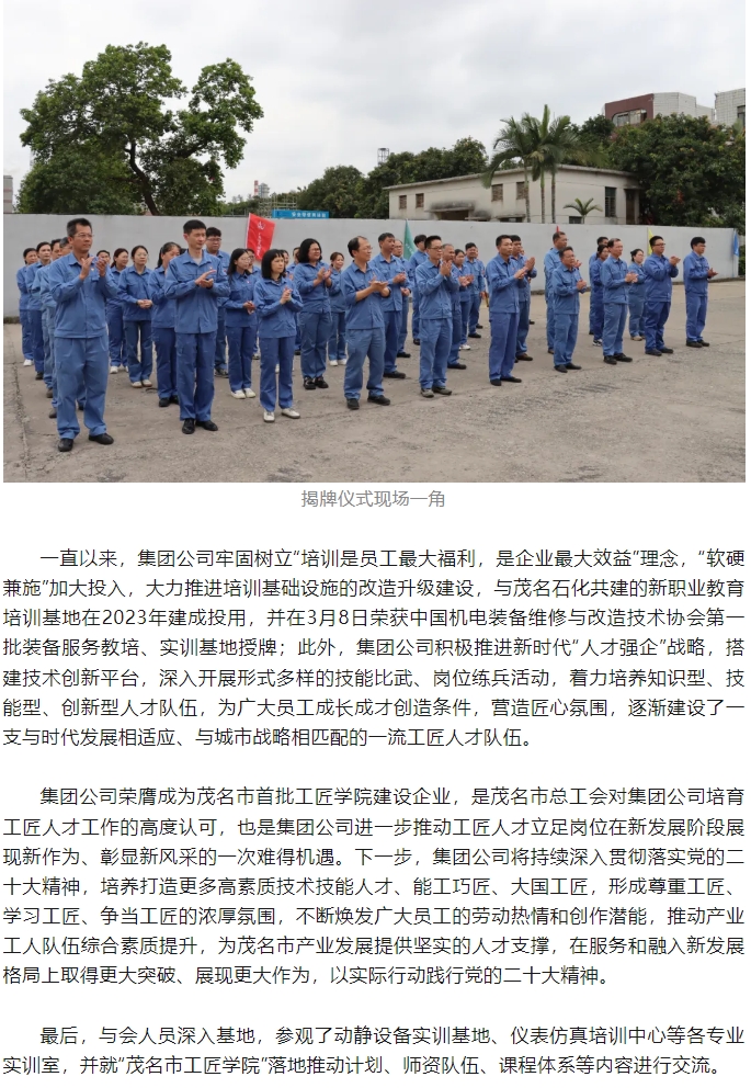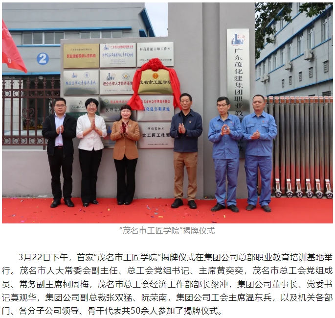 首家“茂名市工匠學院”在茂化建正式揭牌成立!