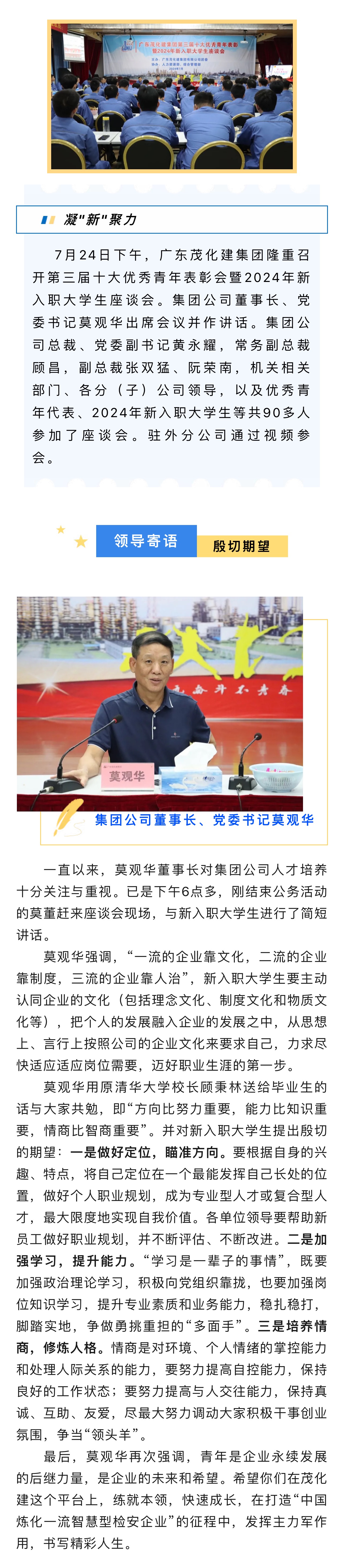 集團公司召開第三屆十大優(yōu)秀青年表彰會暨2024年新入職大學(xué)生座談會