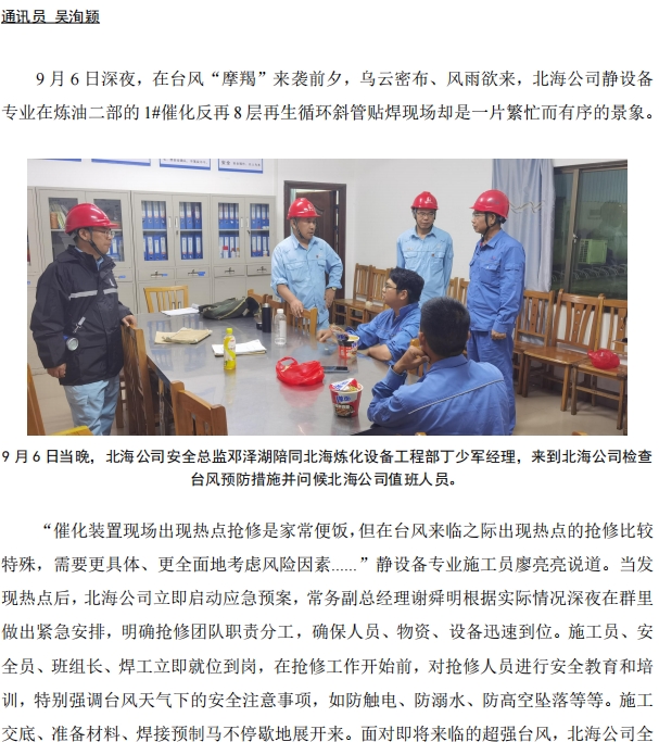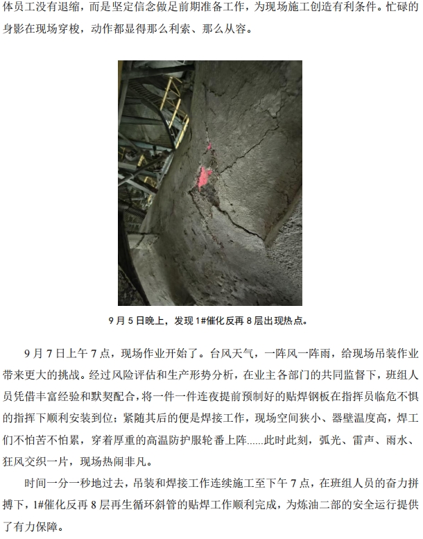 臺(tái)風(fēng)前夕!北海公司對 1#催化再生循環(huán)斜管貼焊搶險(xiǎn)