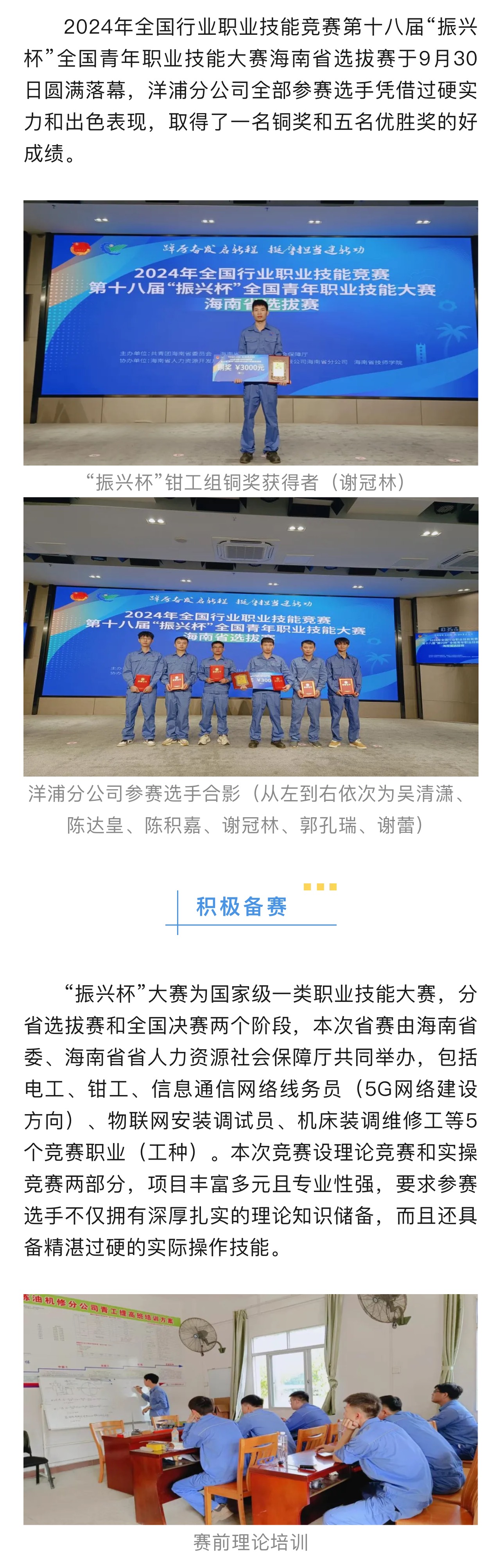 洋浦分公司在第十八屆“振興杯”全國青年職業(yè)技能大賽海南省選拔賽中榮獲佳績