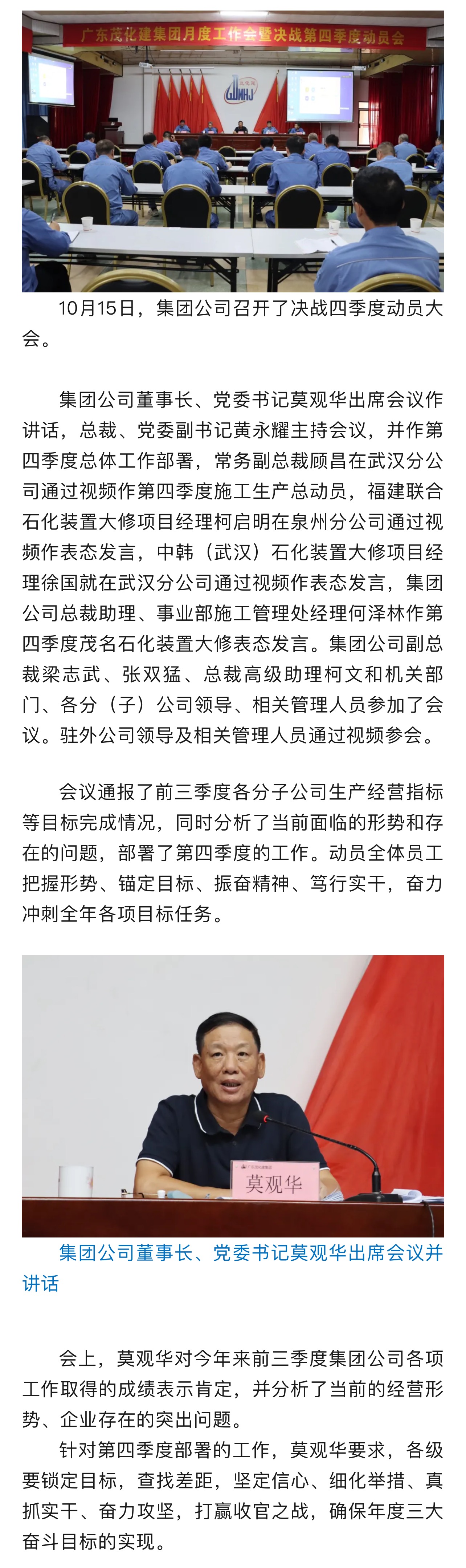 決戰(zhàn)決勝四季度 沖刺全年奮斗目標(biāo)——集團(tuán)公司召開決戰(zhàn)第四季度動(dòng)員大會(huì)
