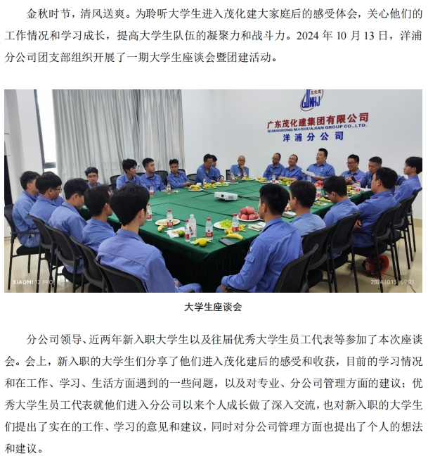 洋浦分公司團支部組織大學生座談會暨團建活動