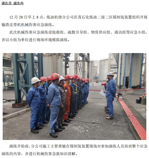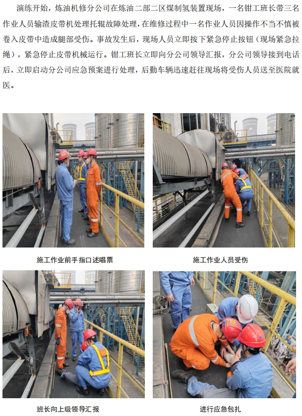 煉油機修開展機械傷害應(yīng)急演練