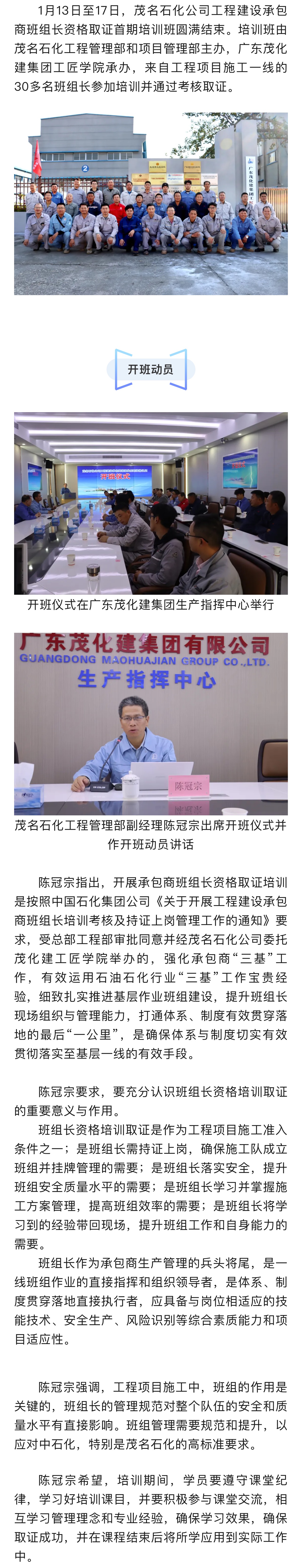 茂名石化工程建設(shè)承包商班組長資格取證首期培訓班圓滿結(jié)束