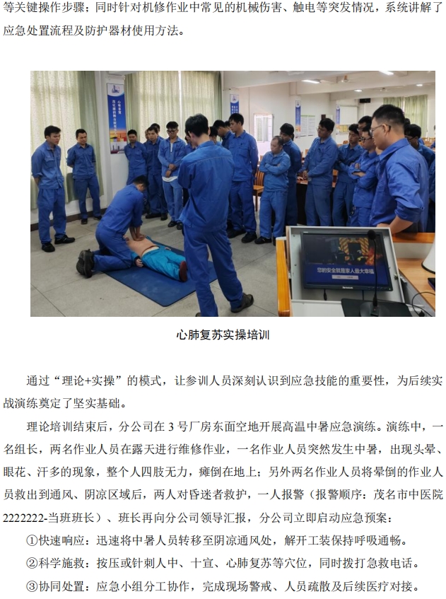 煉油機(jī)修分公司開(kāi)展應(yīng)急技能培訓(xùn)及高溫中暑應(yīng)急演練