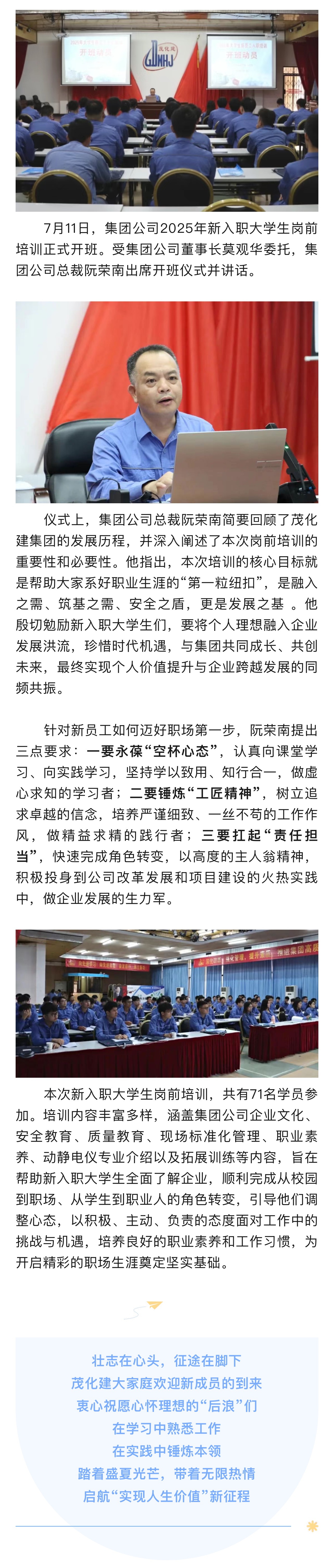 萌新報到!廣東茂化建集團(tuán)2025年新入職大學(xué)生崗前培訓(xùn)正式開班