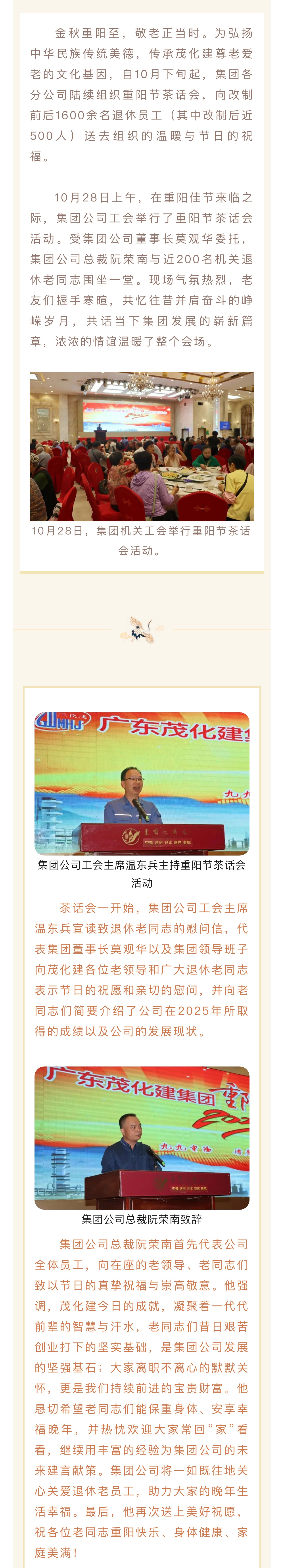 情暖重陽,共話發(fā)展—— 廣東茂化建集團開展2025年重陽節(jié)茶話會活動