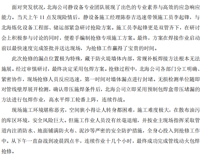 北海公司緊急搶修:高效攻堅(jiān),力保安全防線