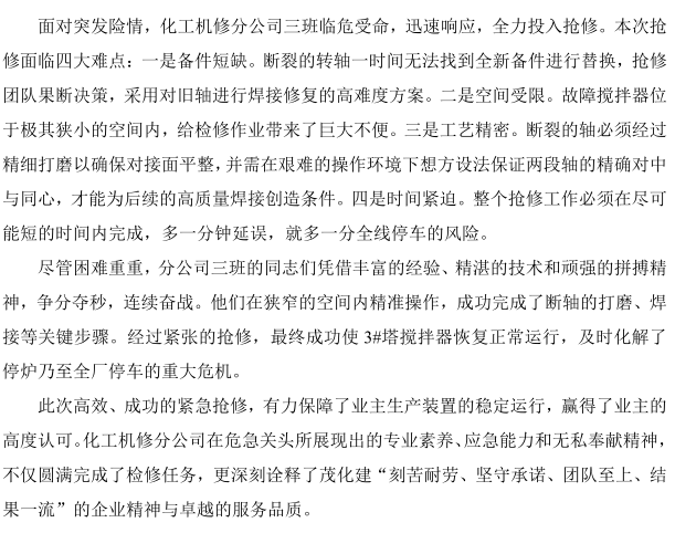 聞令而動(dòng)!化工機(jī)修分公司高效搶修守護(hù)業(yè)主生產(chǎn)生命線