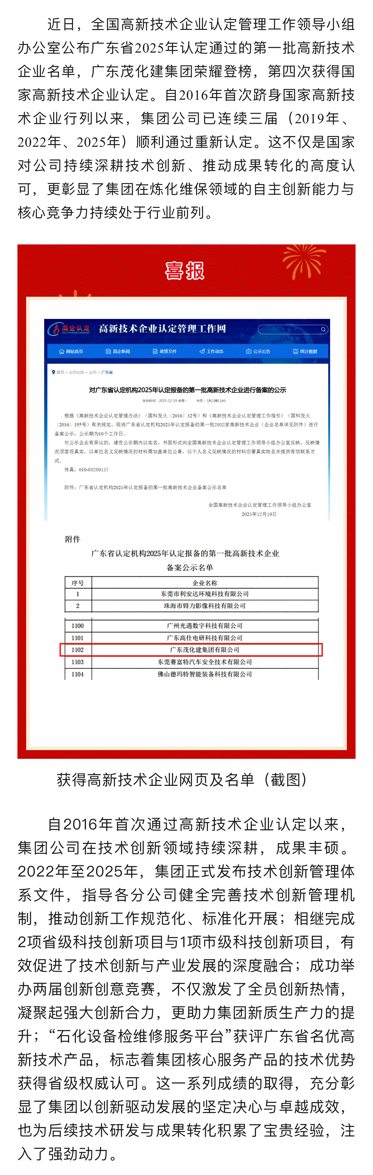 喜報 | 廣東茂化建集團再通過高新技術(shù)企業(yè)認定